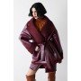 Montone in ecopelle con cinturone in vita. Tasche a filetto frontali.