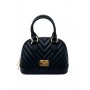 Borsa piccola in pvc con chiusura zip e doppio manico. Tracolla in stoffa regolabile e removibile. Dimensioni 17,5 x 14 x 9,5 cm.