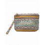 Clutch in tela misto cotone, foderata, con profili ricamati, chiusura zip, tag in canvas con logo ricamato. Manico removibile. Tasca con zip interna.