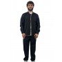 Coordinato composto da camicia con colletto a bomber e tasconi sul petto, pantalone con chiusura bottone e zip, passanti per cintura. Elastico sul retro. Tasche a filetto.
